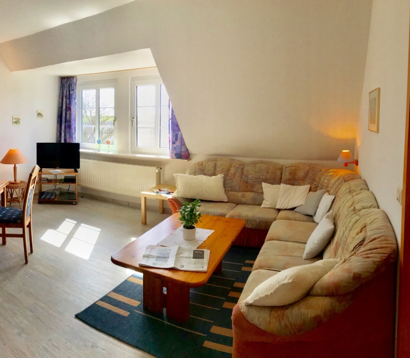 | Schlafmöglichkeiten | Schlafzimmer 1: Doppelbett Schlafzimmer 2: Etagenbett Wohnzimmer: Schlafcouch (1,20×2,10m) |