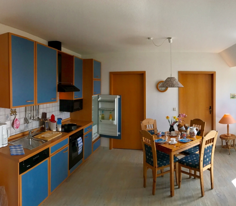| Küchenzeile | Komplettausstattung mit Spülmaschine, Mikrowelle, Wasserkocher, Kaffeemaschine, Eierkocher… |